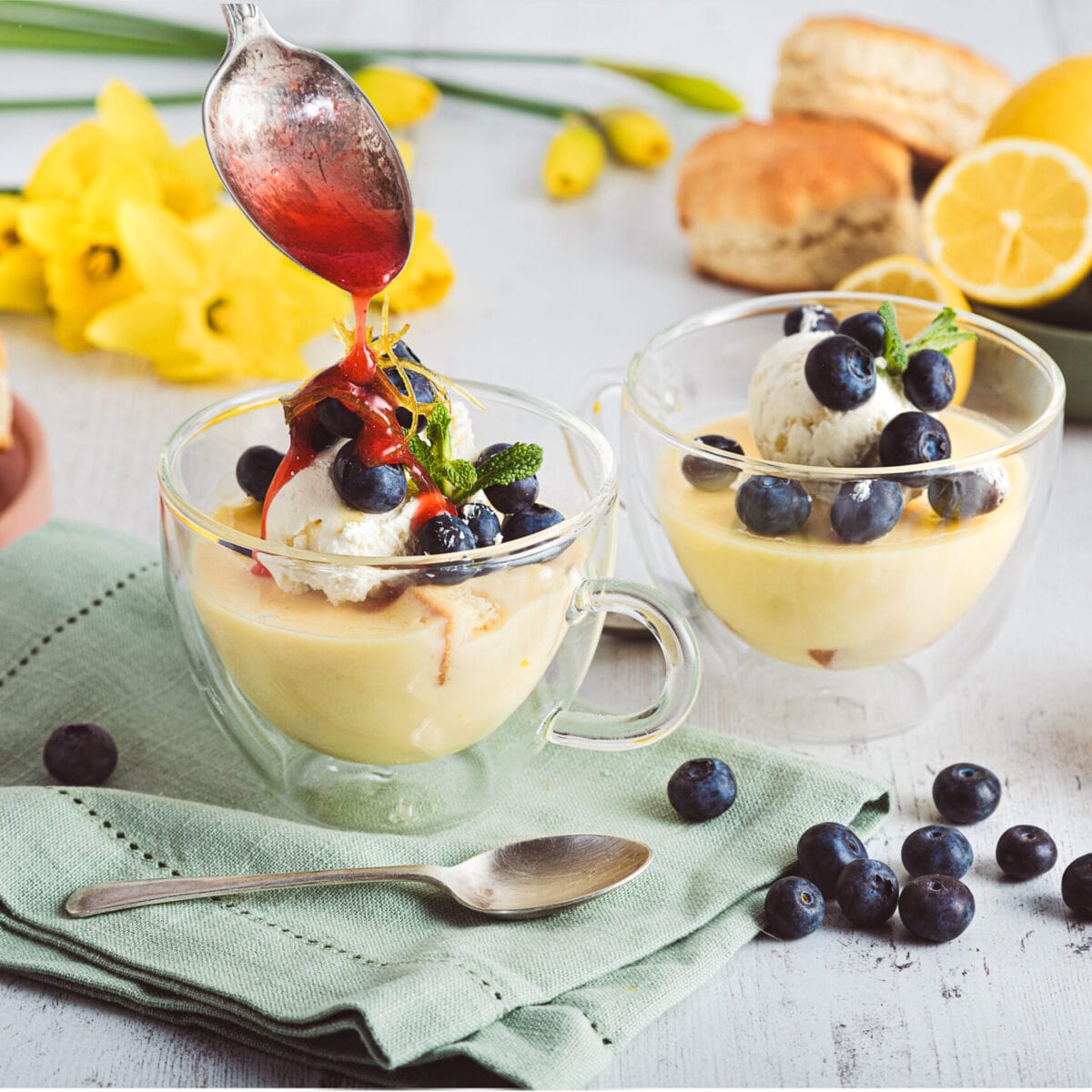 A light yet indulgent dessert, perfect for summer gatherings or an scrumptious sweet treat. This silky lemon posset is poured over limoncello-soaked scones and left to set, creating a beautifully creamy texture with a zesty kick. Topped with a vibrant raspberry purée, fresh berries, and a dollop of cream, it’s a refreshing and effortless dessert that’s sure to impress.