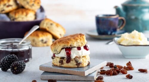 Infused with creamy buttermilk and tangy West Country Farmhouse extra mature Cheddar, these scones deliver a rich savoury flavour and a wonderfully soft, crumbly texture. Perfectly balanced, they are a delightful addition to any table, whether enjoyed warm or as the perfect accompaniment to a hearty bowl of soup.