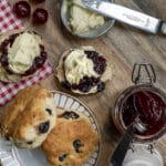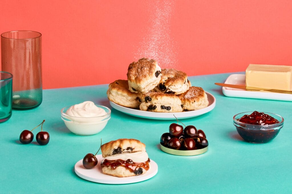 Enriched with buttermilk, Cornish clotted cream, and zesty lemon curd, these scones strike a perfect balance of soft texture and bright citrus flavour. Finished with pieces of candied lemon peel, they’re a refreshing twist on tradition—perfect with raspberry jam, lemon curd, or both!